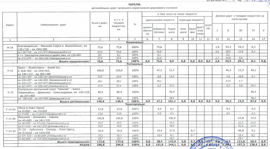 Согласно данным ресурса, чиновники заключили договор по содержанию автомобильных дорог общего пользования государственного значения Николаевской области до 31 декабря 2019 года на 3 миллиона 670 тысяч 875 гривен с предприятием «Містдорбуд».
