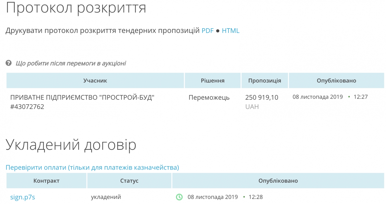 Согласно данным ресурса, чиновники администрации 8 ноября заключили договор с частным предприятием «Прострой-Строй» на сумму в 250 тысяч 919 гривен по капитальному ремонту остановки общественного транспорта возле дома №50 по улице Декабристов.