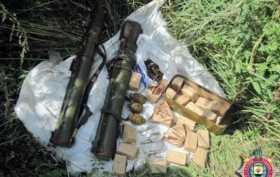 — 2 ручных гранатомета «Муха», 3 боевые гранаты, цинковый ящик с пулеметными боеприпасами и пакет с патронами к автомату весом около 4 кг обнаружили бойцы сводного отряда областного главка милиции. Арсенал хранился в заброшенном доме частного сектора на окраине Марьинки, - говорится в сообщении.