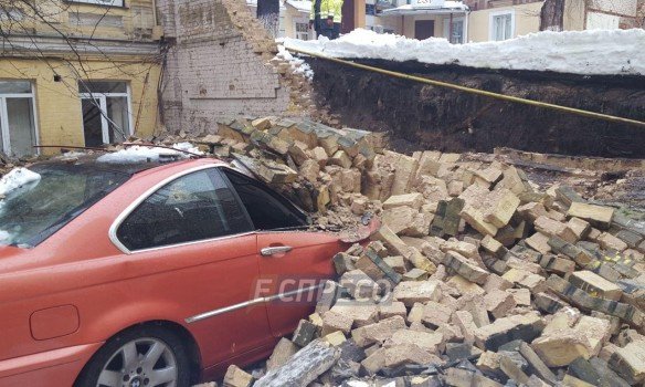 В центре Киева обрушилась стена между домами: повреждены машины и газопровод