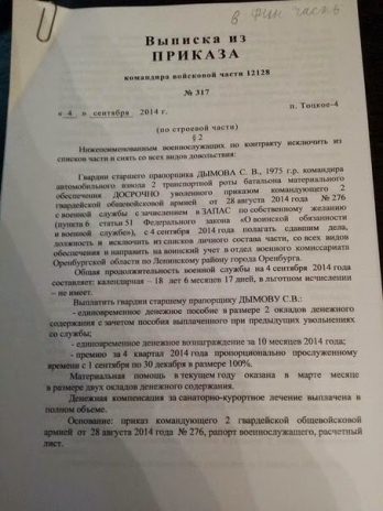 В Оренбургской области России задним числом уволили шестерых военных, которые погибли 17 сентября, когда их автомобильная колонна попала под артобстрел под Дебальцево.