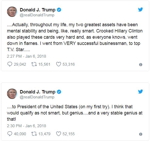 6 января в серии твиттов Дональд Трамп заявил, что автор «полный неудачник, который писал рассказы, чтобы продать эту действительно скучную и неправдивую книгу».