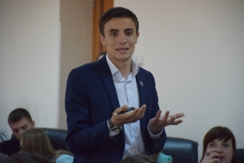 Далее выступил директор колледжа прессы и телевидения, заведующий кафедрой профессионально-ориентированных дисциплин колледжа Глеб Головченко. Он считает, что главная функция директора департамента образования - это выполнение заданий, которые перед ним ставит областная государственная администрация. Также отметил, что видит систему образования открытой, демократичной, спортивной, молодой и европейской.
