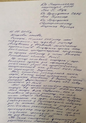 Украинская летчица и народный депутат Надежда Савченко, которая находится в СИЗО Москвы, обратилась за помощью к генсеку ООН, президентам ПАСЕ и Европарламента.