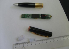Найденная ручка была оборудована скрытой видеокамерой, отверстием под микрофон, микросхемой и выходом для карты памяти.