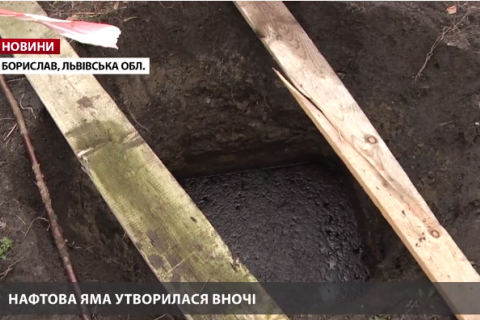 В Бориславе Львовской области на огороде на частном земельном участке образовалась глубокая яма с нефтью.