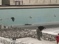 Главный инженер ООО «Металлург Юга» отметил, что рабочие впервые взялись за капитальное обновление дна чаши большой спортивной ванны. Они меняют стяжку, плитку, усиливают герметизацию форсунок дна.