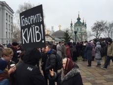 Также звучат лозунги, что «Донбасс и Крым - это Украина». Активисты утверждают, что земля, на которой установлено религиозное сооружение, является коммунальной собственностью Киева. "Еще раз подчеркиваю, это у киевлян была забрана земля. Это - коммунальная собственность города Киева", - сказал один из выступающих. Кроме того, активисты на территории возле музея установили мощную аудиосистему, из которой звучит музыка. Активисты возмущены тем, что священники Московского патриархата отстаивают пророссийские позиции о том, что в Украине нет российской оккупации, а якобы идет "гражданская война". "В 2015 году они хотели здесь организовать "киевскую народную республику", но это им не удалось.
