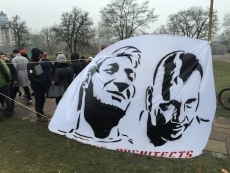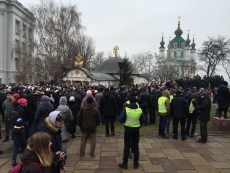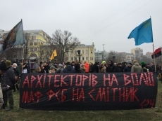 В центре Киева возле Национального музея истории Украины (ул. Владимирская, 2) около сотни активистов проводят акцию в поддержку арестованных архитекторов Александра Горбаня и Алексея Шемотюка, которые подозреваются в попытке поджога в ночь на 25 января религиозного сооружения Украинской православной церкви Московского патриархата.