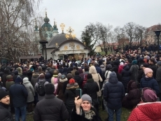 В то же время около 250 верующих пришли на службу, которая проходит в религиозном сооружении УПЦ МП, расположенном возле музея. Активисты и верующие спорят по религиозным и историческим вопросам. Верующие просят не мешать им проводить службу.