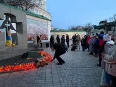 У памятного знака жертвам Голодомора были установлены композиции с пшеницей и свечами. Присутствующие почтили память жертв Голодомора минутой молчания. Священнослужители Михайловского Златоверхого монастыря отправили поминальную литию по погибшим во время этой трагедии.