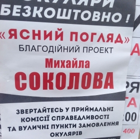 А несколько дней назад в Первомайске были замечены объявления, где Михаил Соколов предлагал бесплатную помощь в подборе очков для людей с проблемами зрения.
