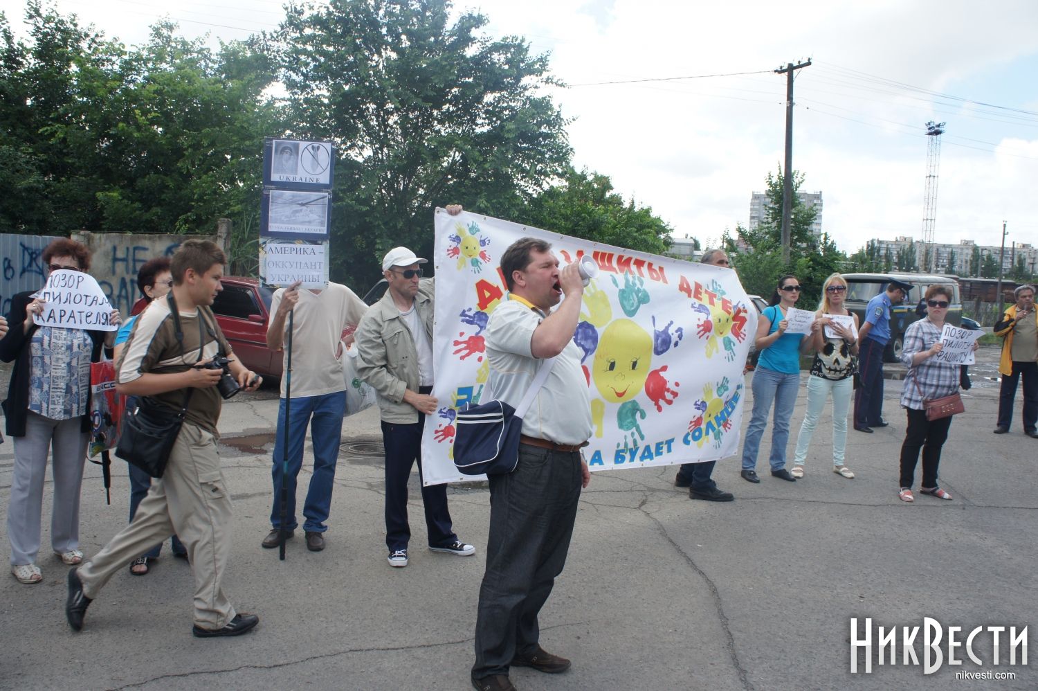 Акция длилась всего около двадцати минут. В ходе нее активист "ПСПУ Натальи Ветренко" Дмитрий Никонов, который считает себя «народным мэром» Николаева, клеймил позором украинских летчиков, утверждая, что они убивают мирных жителей Донбасса.