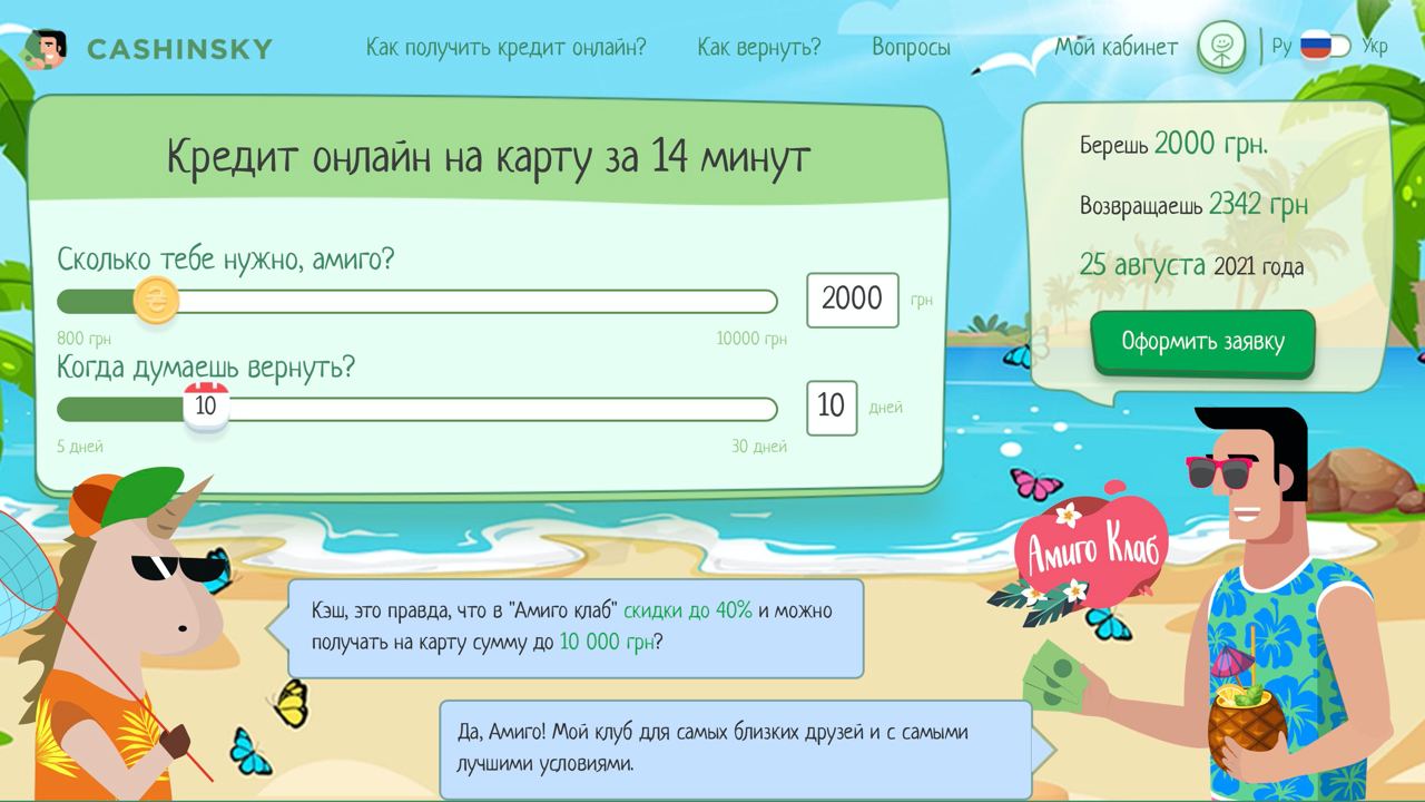 Сервис онлайн-кредитования Cashinsky предлагает получить займ на месяц без залога, поручителей, справки о доходах.