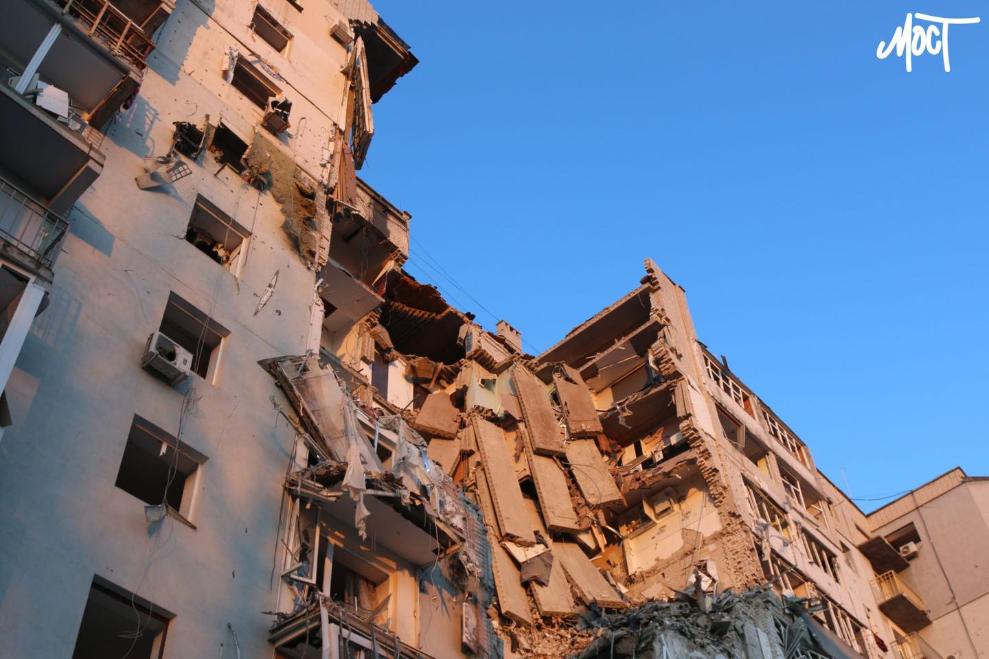 За його словами, через удар зруйновано пʼятнадцять квартир з 1 по 10 поверх одного з підʼїздів. Крім цього, у 80 оселях вибило шибки.