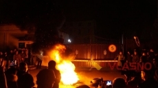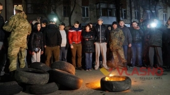 Местный сайт Vlasno.info сообщает, что протестующие подожгли шины.