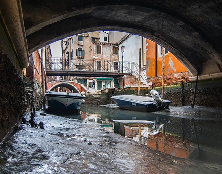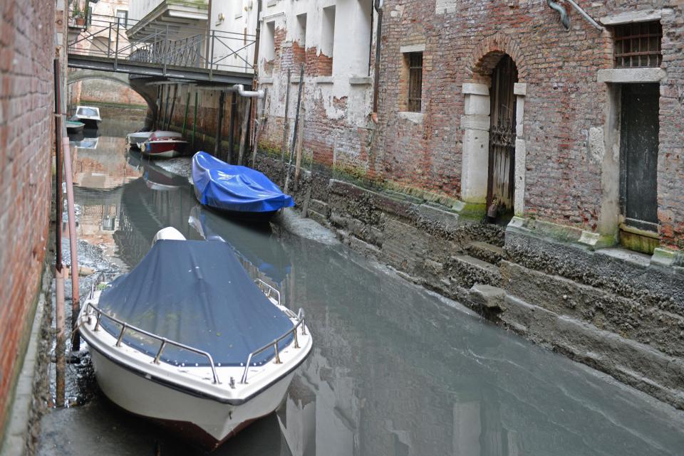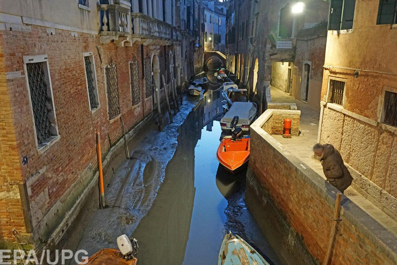 В Венеции из-за непривычно холодной для региона погоды и низких приливов стремительно высыхают каналы.