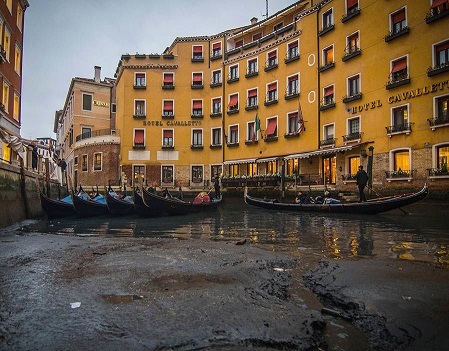 В Венеции пересохли каналы – гондолы и лодки стоят на мели