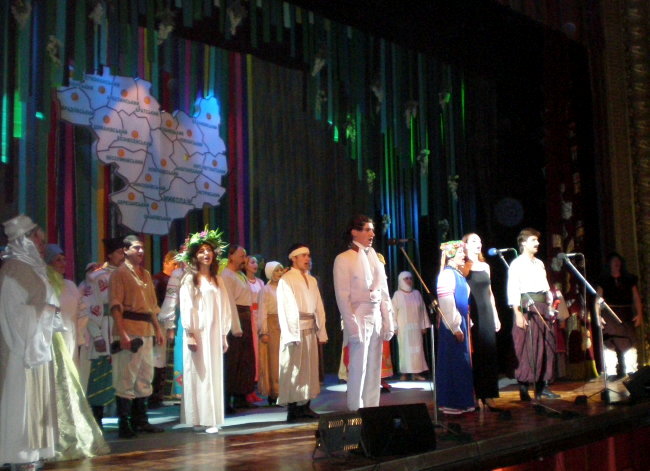 Перед собравшимися с яркой концертной программой выступили артисты театра. На заднем фоне «сиял» муляж Николаевской области, на котором отсутствовал почему-то Жовтневый район...