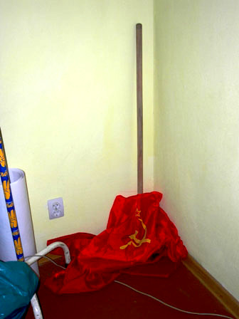 - А какие могут быть отношения, если это наши враги? Можете даже посмотреть – вон их коммунистический флаг у нас на швабре. Мы не будем бить им стекла и тому подобное. Да, 7 ноября мы пытались выйти, но это было запрещено решением суда. Мы знали решение суда заранее.