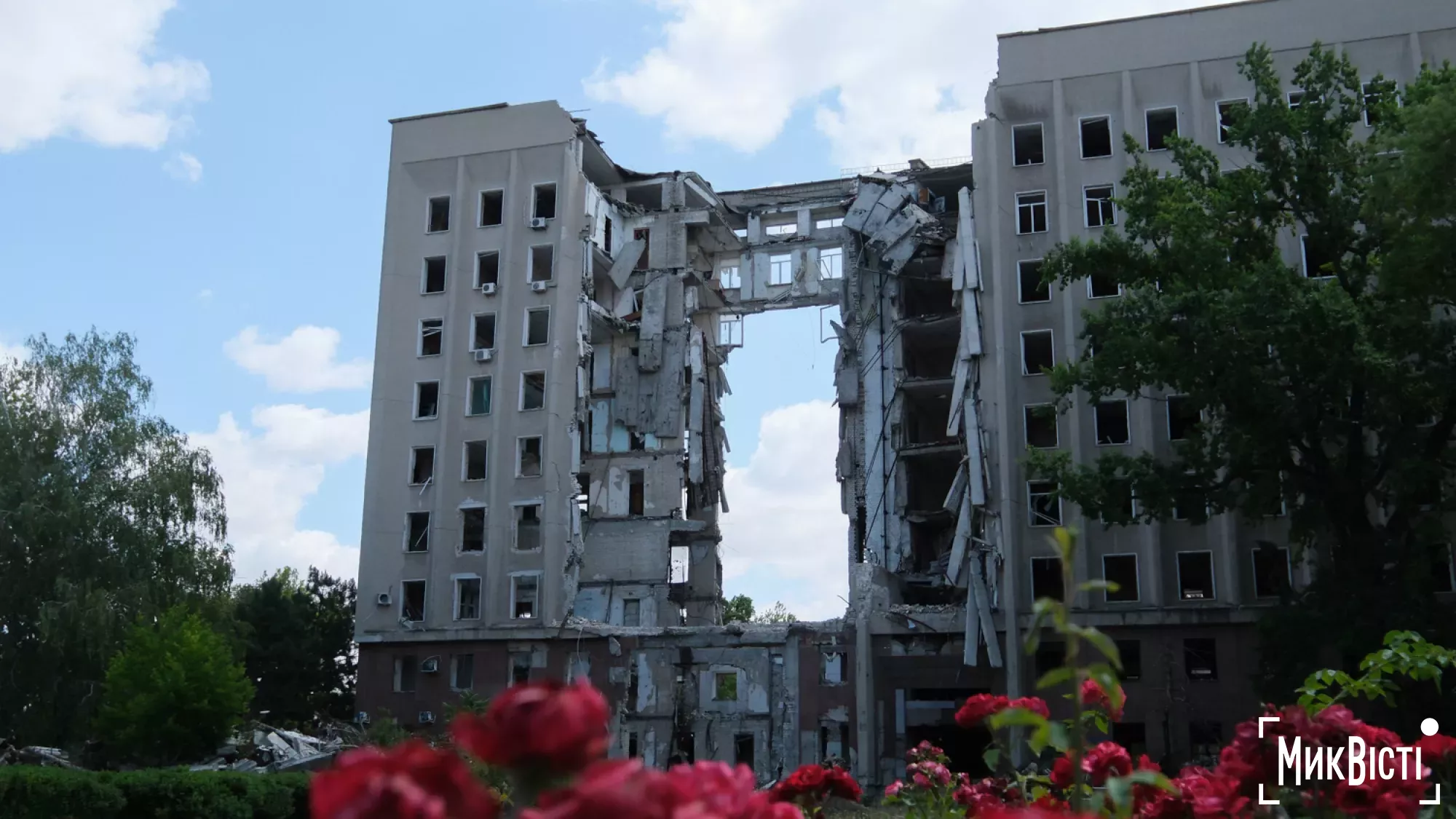 Зруйнована будівля Миколаївської ОВА, червень 2025 року. Фото: архів МикВістіЗруйнована будівля Миколаївської ОВА, червень 2025 року. Фото: архів МикВісті
