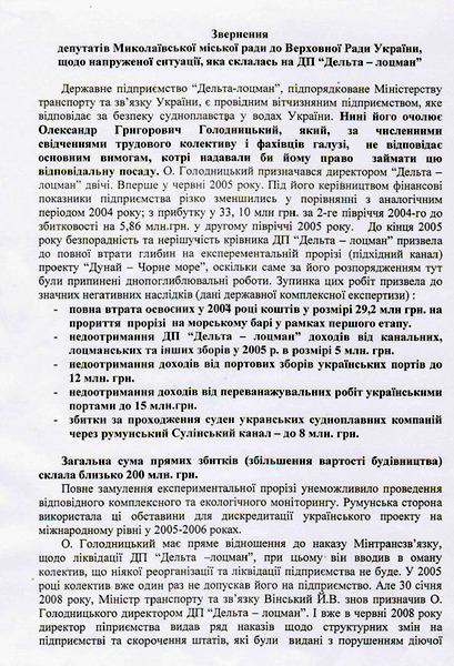 Возмутил депутатов БЮТовцев и тот факт, что руководство предприятия не нашло времени посетить собрание Первичной профсоюзной организации ГП «Дельта - Лоцман» в ходе которого возмущенные работники предприятия говорили о своих проблемах.