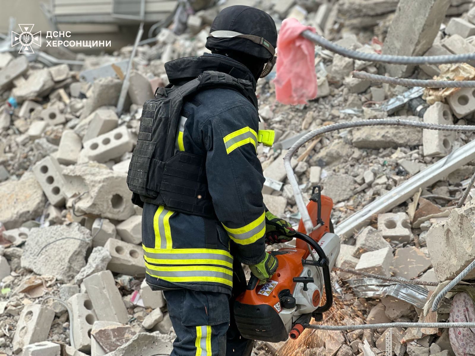 In Kherson, rescuers have pulled out the body of a man killed in a Russian airstrike from the rubble of a multi-storey building.