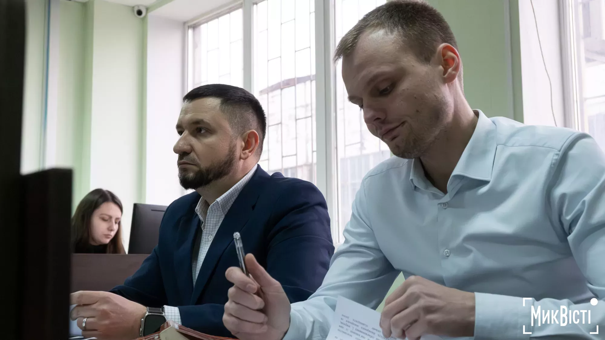 Prosecutors of the District Prosecutor's Office Vitalii Kravchenko and Vladislav Yakubovskyi. Photo: NikVestiThe investigation indicates that the full payment was made on 27 December to the account of Spetselektromontazh LLC. Under these circumstances, the director is suspected of abuse of office under martial law and embezzlement of budget funds.