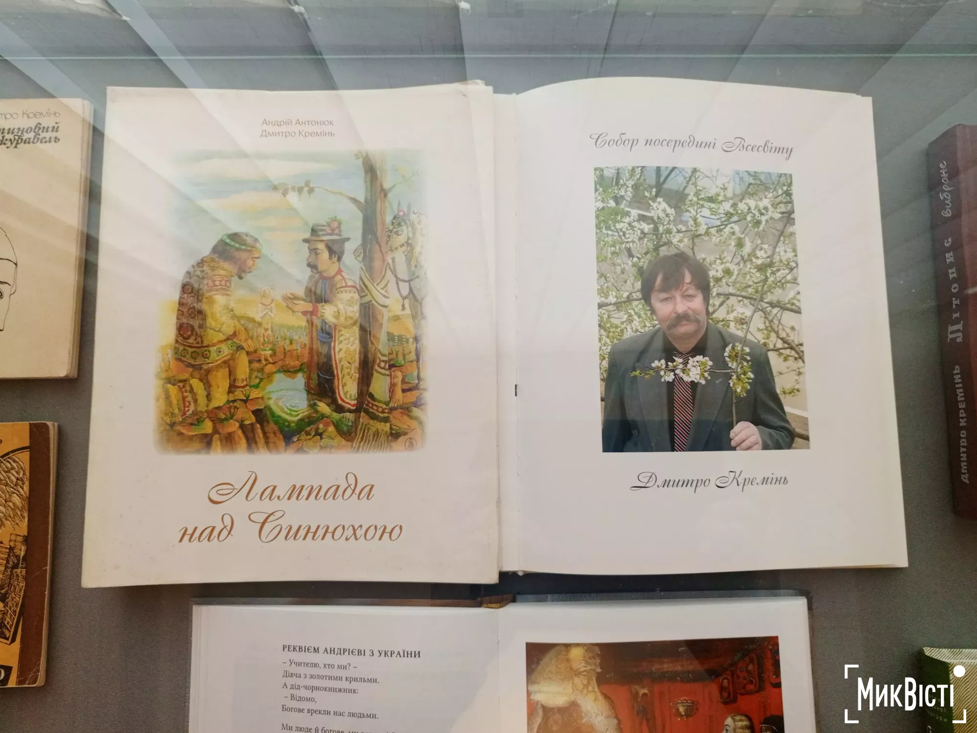 The exhibition features works from the museum’s collection by People’s Artists of Ukraine Andrii Antoniuk (1943–2023), Mykola Ozernyi (1938–2025), Mykhailo Bozhii (1911–1990), Honoured Artist of Ukraine Viktor Semerniov (b. 1942), and designer-artist Yurii Steshyn (1938–1993). The exhibition also features books by Shevchenko Prize laureate and Honoured Artist of Ukraine Dmytro Kremin. As museum director Serhii Rosliakov explained, the poet’s presence among the artists was no coincidence: he socialised extensively with artists and was friends with Andrii Antoniuk. Artists from Mykolaiv illustrated Dmytro Kremin’s poetry collections, painted his portraits, and he dedicated his poems to them.
