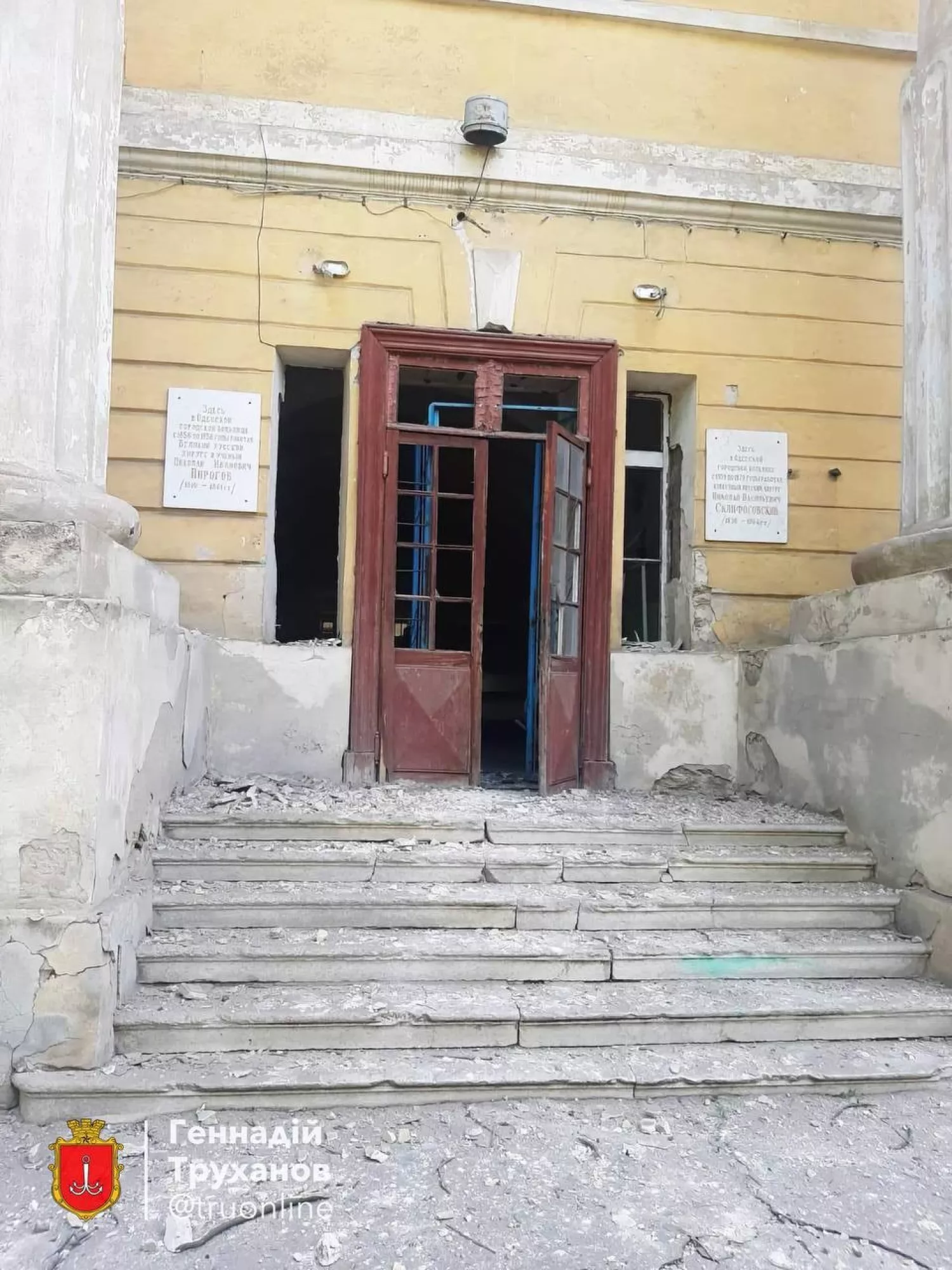 As a result of the nighttime shelling of the historic centre of Odesa by Russian troops, significant destruction was recorded in the city. Residential buildings, one of the oldest medical institutions and a university building were damaged.