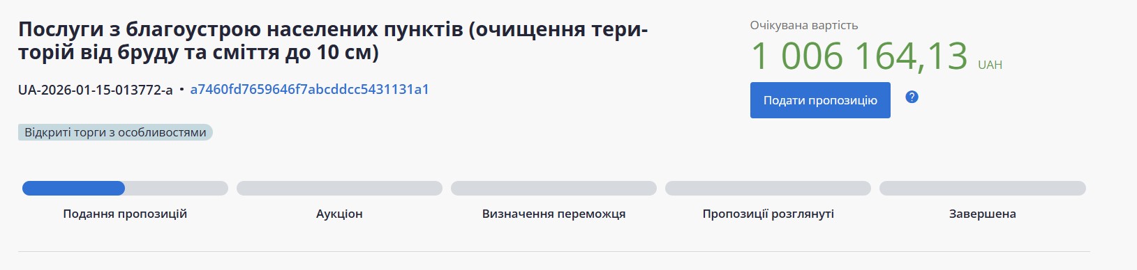 The expected cost of the purchase is 1 million 6 thousand 164 hryvnias.