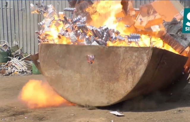 На окраине Ужгорода сожгли конфискованных сигарет на сумму более 30 тысяч гривен.