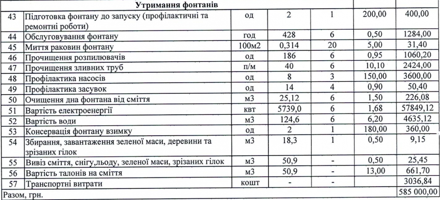 В частности, за эти деньги подрядчик на протяжении всего года должен был ухаживать за двумя чашами фонтанов: проводить профилактику систем фонтанов, проводить очистку чаш, проводить подготовку фонтана к запуску и консервацию перед зимой, убирать мусор и выполнять ряд других работ по уходу.