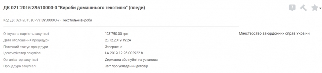 Министерство иностранных дел Украины купило у физических лиц–предпринимателей чашки и пледы по цене в 1500 гривен за единицу.