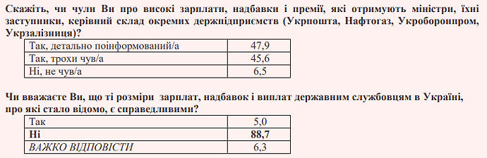 Украинцы считают несправедливыми заоблачные зарплаты госслужащих