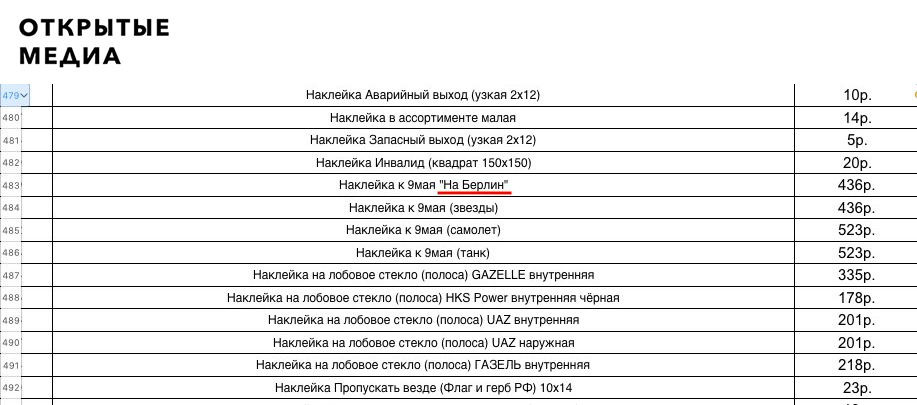 Аукцион был объявлен управлением 28 февраля, начальная цена контракта составляет 800 тысяч рублей. Наклейка к 9 мая «На Берлин» должна стоить не дороже 436 рублей, указано в документации аукциона.