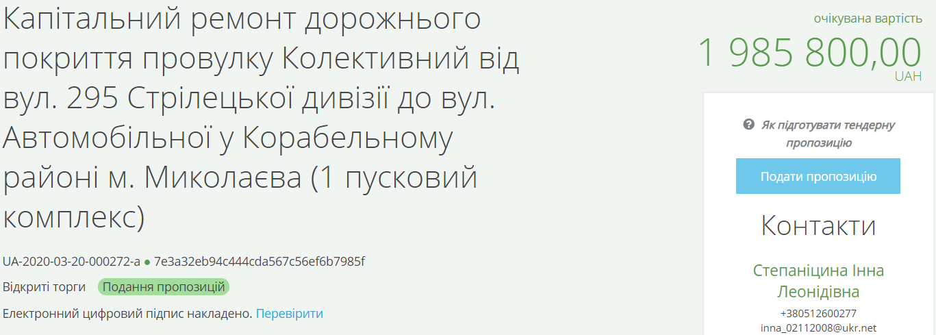 Общая ожидаемая стоимость работ составляет 3 миллиона 771 тысячу 800 гривен, выполнены они должны быть до 31 декабря 2020 года.