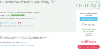 Департамент 20 марта объявил торги на покупку 400 контейнеров для сбора ТБО с ожидаемой стоимостью 1,6 миллионов. Товар должен быть поставлен до 15 октября 2020 и иметь гарантию не меньше 3 лет.