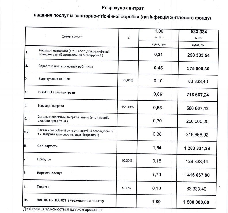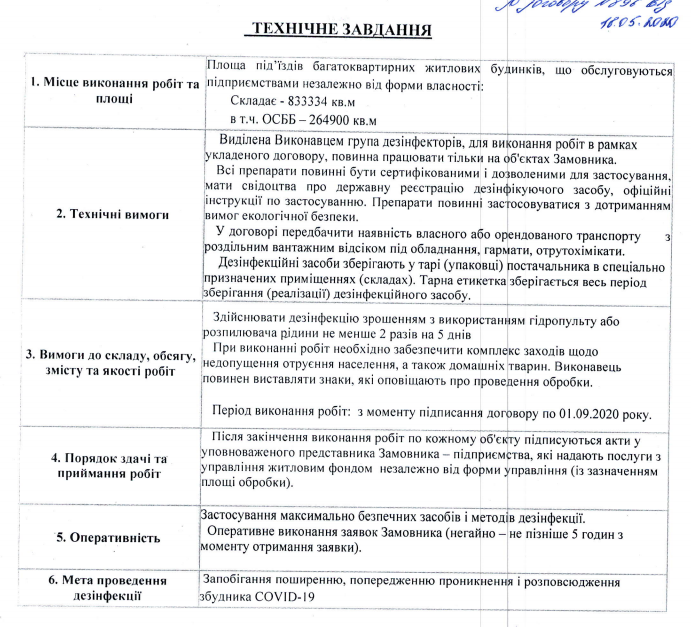 Отмечается, что подрядчик должен будет провести дезинфекцию многоэтажек на площади 833 тысяч 334 м2, в том числе 264 тысяч 900 м2 ОСББ.