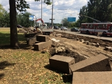 При этом, несмотря на то, что тендерная процедура не завершена, сегодня, 1 августа на данном участке уже проводятся работы по реконструкции дороги. Так, сотрудники неизвестной компании демонтировали бордюры, сняли верхний слой асфальта, установили новые опоры для уличных фонарей и линий для троллейбуса, демонтаж старого плиточного покрытия, а также фундамента остановочного комплекса, который стоял на этом месте ранее.
