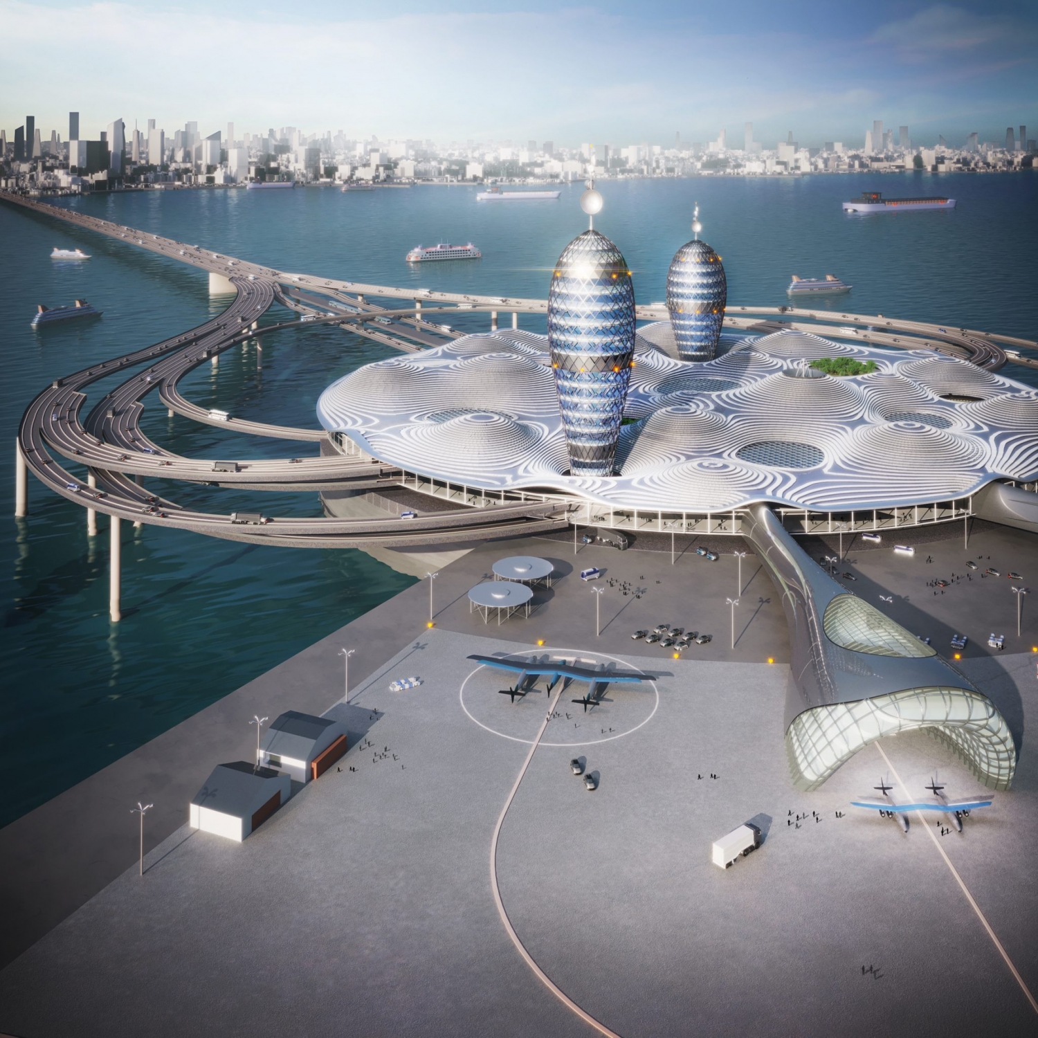 В Японии представили концепцию футуристического космопорта в Токийском заливе