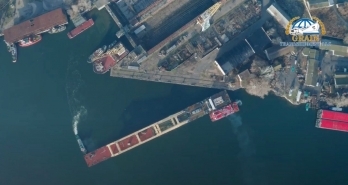 Николаевская компания «Грейн - Трансшипмент» выполнила буксировку плавкрана LK - 600 «Захарий» для продолжения строительства мостов в Запорожье.
