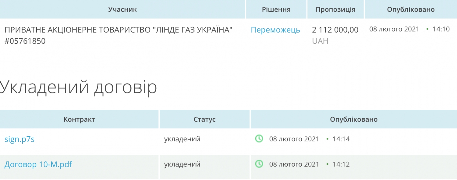 В понедельник, 8 февраля больница заключила договор с частным акционерным обществом «Линде газ Украина» на сумму в 2 миллиона 112 тысяч гривен. За эту сумму подрядчик до конца года должен предоставить больнице 352 тонны кислорода.