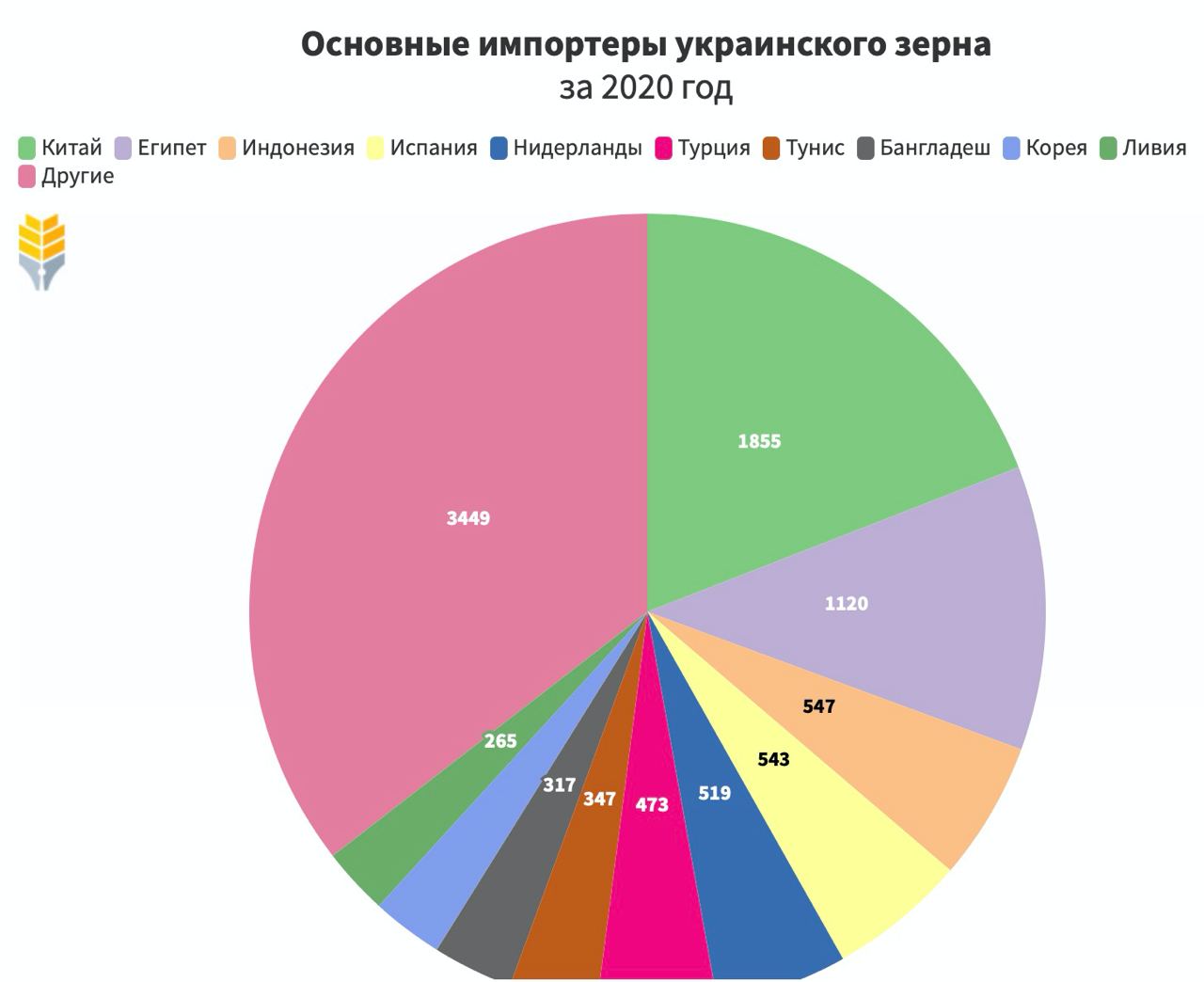 В десятку крупнейших покупателей украинского зерна по итогам 2020 года вошли: