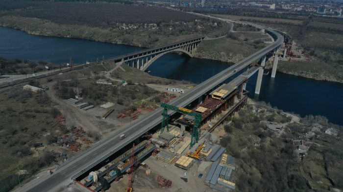 На строительстве Запорожского моста установлено 67-метровое прогонное строение