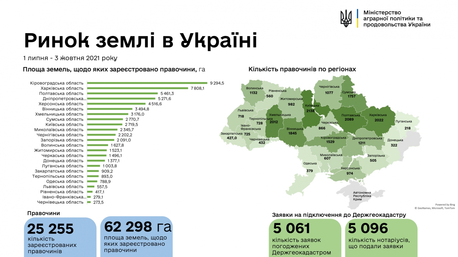 В Николаевской области было заключено 607 сделок – это 17-е место по количеству сделок. А вот по площадям область занимает 10-е место –– 2 тысячи 345,7 гектара.