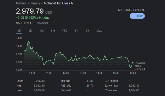 8 ноября обычные тикеты акций компании (класс А) добавили 1,2% к стоимости и достигли уровня в 3008,1 доллара за акцию. Этот рост привел к тому, что капитализация Alphabet впервые достигла 2 триллионов долларов.