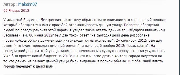 Поддержала обратившегося еще одна заявительница, которая обращалась в прошлом году, но получала обещания.