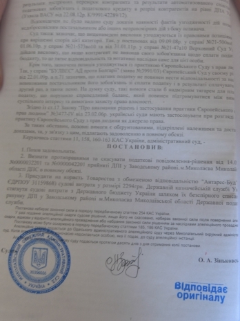 Также предприятие предоставило решения двух выигранных судов по их искам против налоговой относительно возмещения НДС: в арбитражном и апелляционном судах.