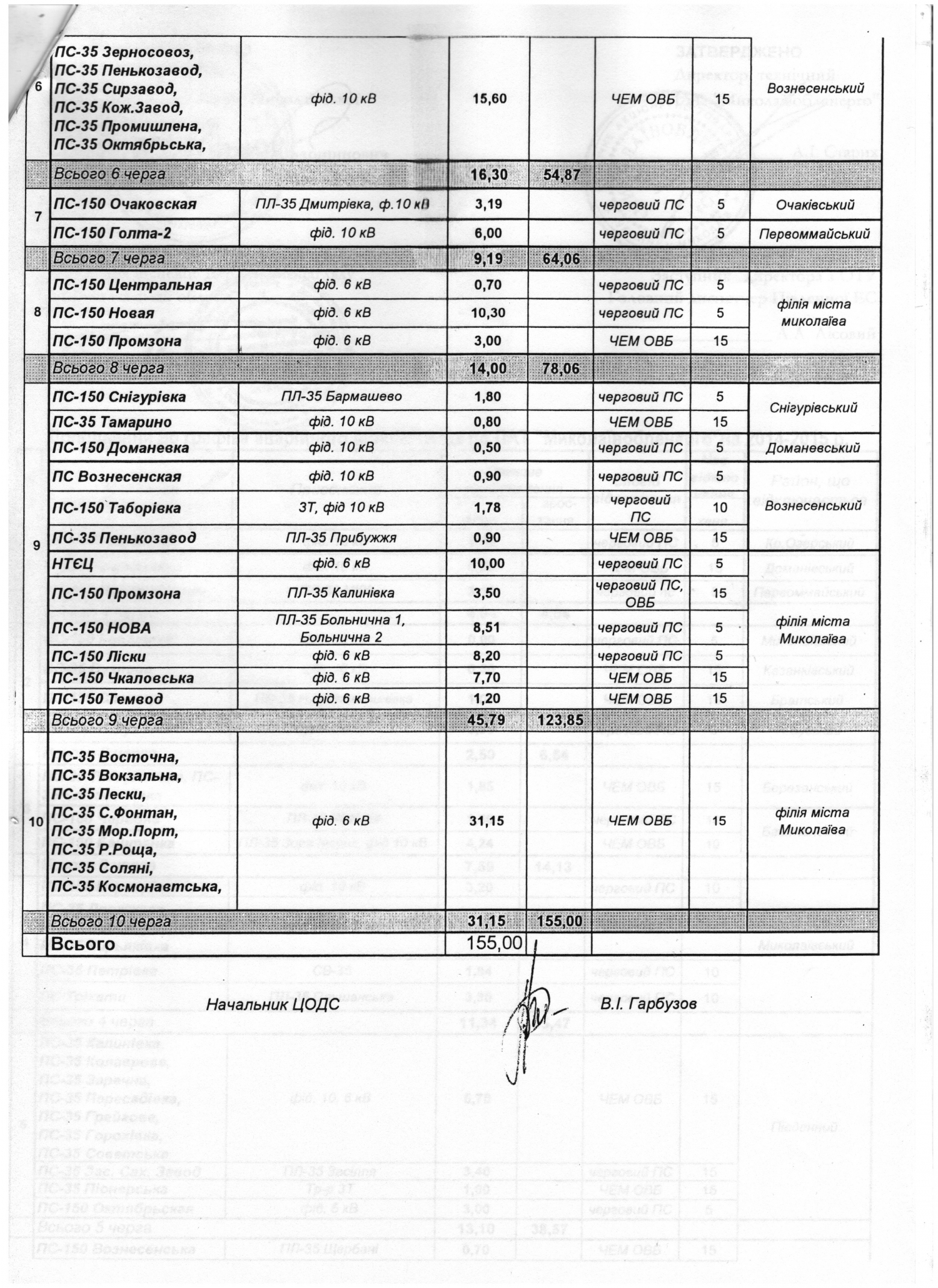В случае повторного введения графиков аварийного отключения электроэнергии по ПАО «Николаевоблэнерго», так называемых «веерных» отключений, разработаны, согласованы и утверждены общие документы, регламентирующие энергообъекты и районы обесточивания.